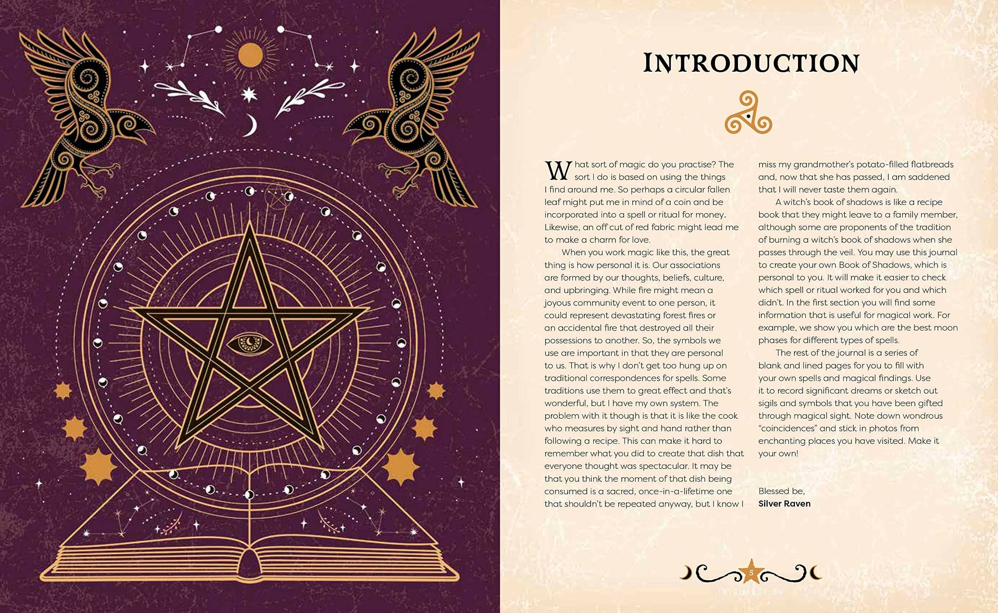 Every witch needs a Book of Shadows for their magical development. This spell-binding full-color journal will help create your own, with prompts and space to record your recipes, rituals, thoughts, spells, and secret knowledge. Written by practicing witch Silver Raven, this beautifully illustrated journal will become a constant magical companion.