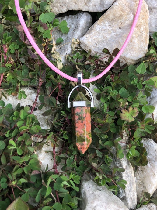 Crystal pendant necklace with assorted pendant and chains. No two necklaces are the same as both pendant and chain are chosen at random.
