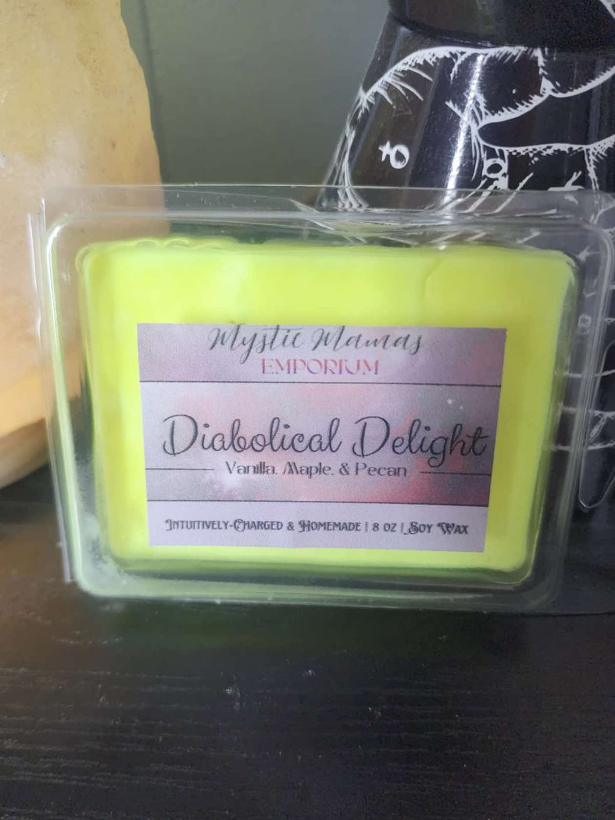 Scents of maple, pecan, and vanilla. Soy wax. Easily breaks apart into 6 cubes. Melt and enjoy:)