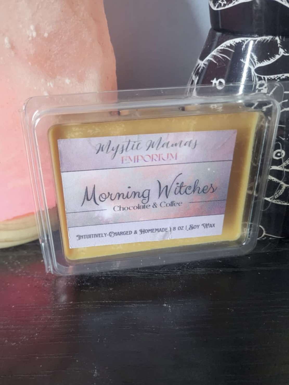 Scents of chocolate and coffee. Soy wax. Easily breaks apart into 6 cubes. Melt and enjoy:)
