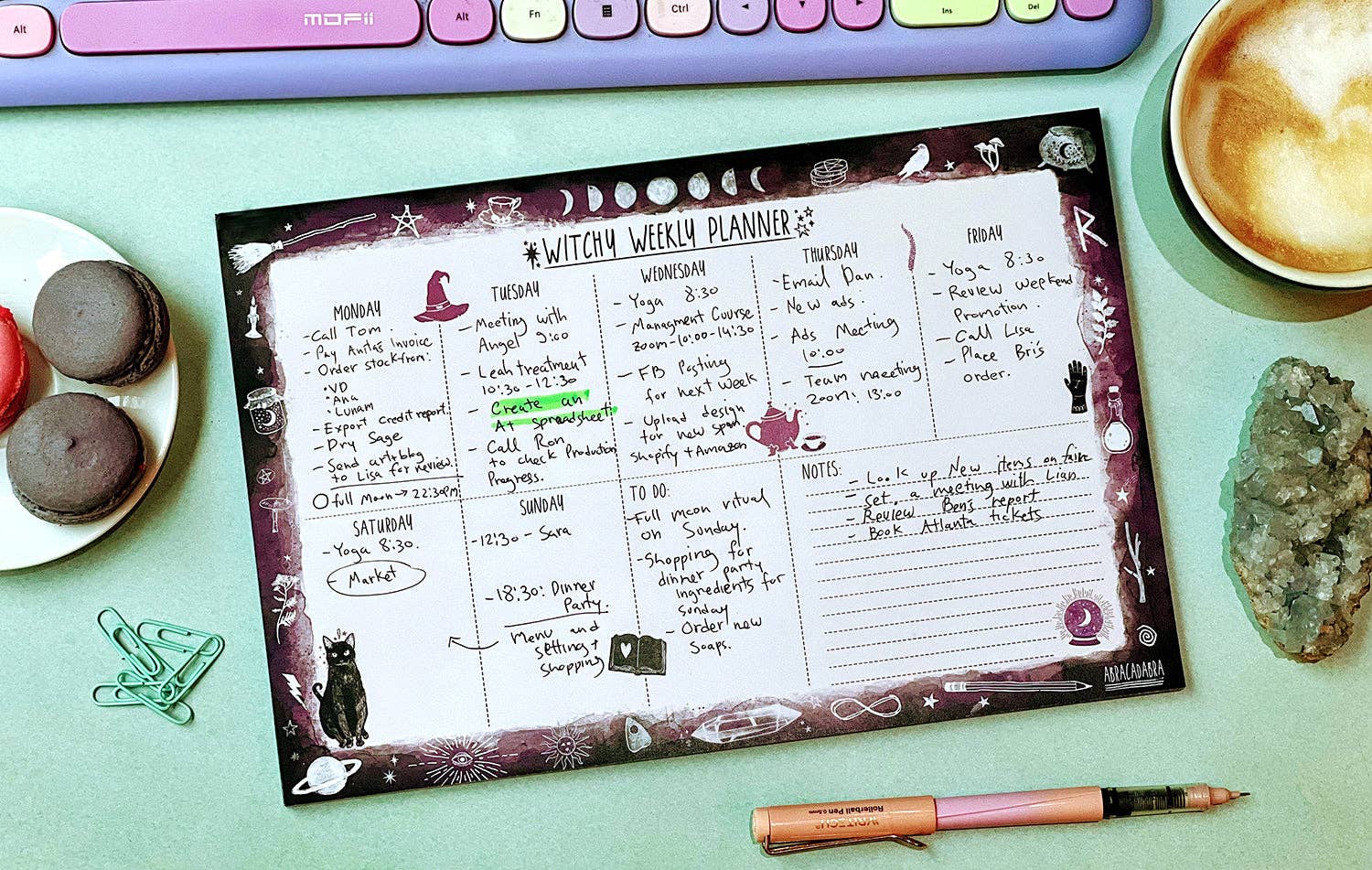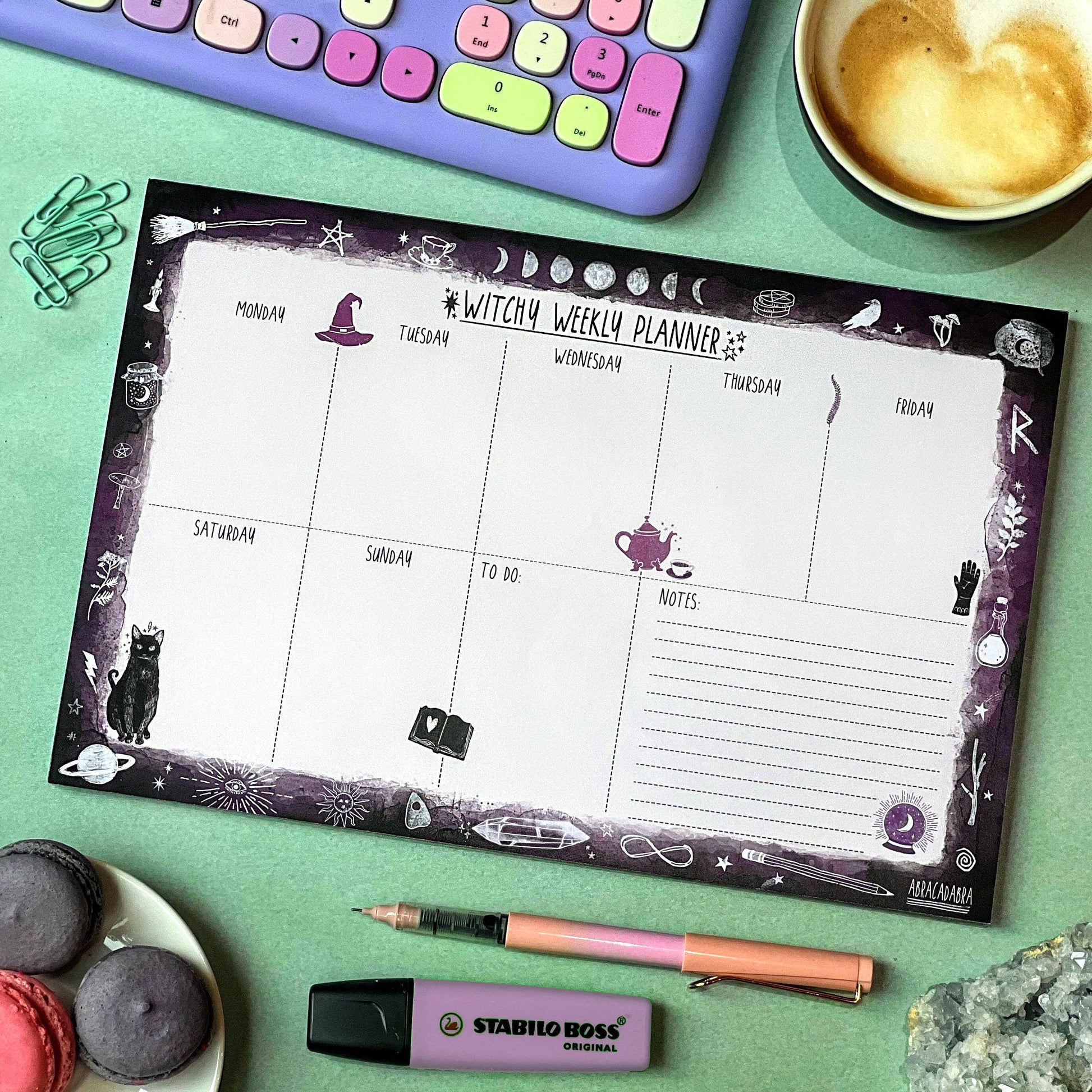 A weekly planner for a busy office witch, student, or any type of organized, to-do list-loving witch. Write down and track your weekly plans and tasks in style.